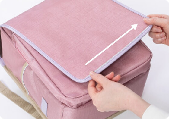 - A フラップは横に引いて開けるタイプです。前方や下に引いても開かないため、ご注意ください。(破損の原因となります)同封の使い方ガイドもあわせてご確認ください。